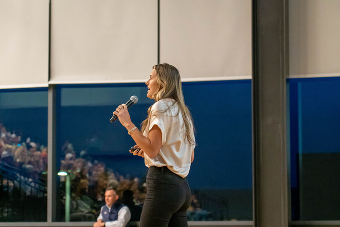 She has spoken at schools like Harvard, Virginia Tech, University of Arizona, University of Wisconsin-Madison, University of Maryland, and was the opening keynote for the 2021 ACC Mental Health Summit. She can speak to both student-athletes and coaches and faculty, as well as the general student-body.